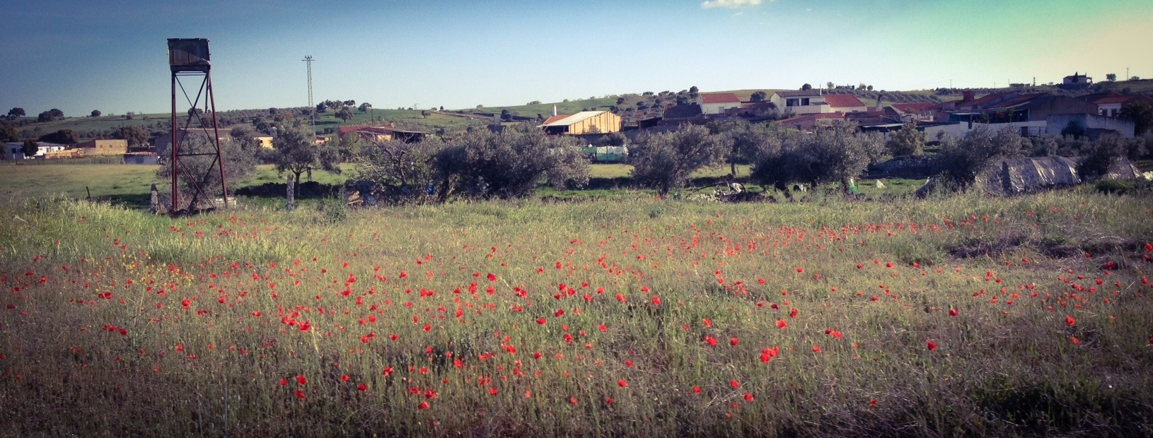 Belleza sin mérito, en las cunetas de la entrada al pueblo. Porque la belleza natural está repartida y no atiende a razones sociales, económicas o culturales. Los Pedroches tiene cunetas bellas en estos días, invadidas por la floración tan oportuna como casual de las amapolas.